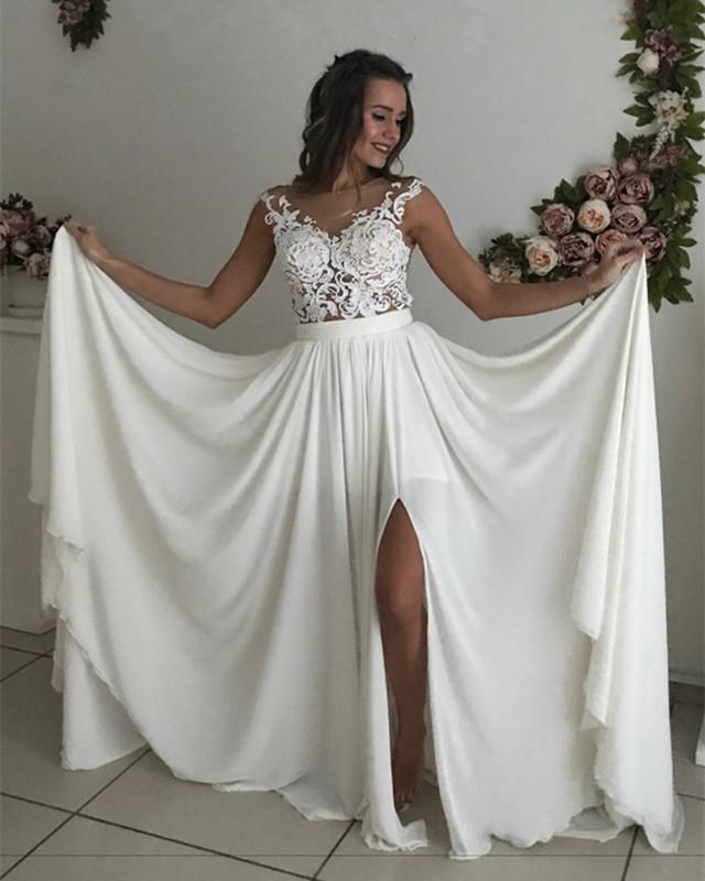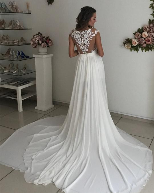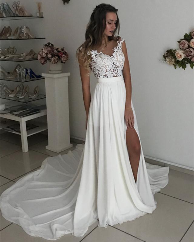 Charming V-Neck Boho Bridal Gowns Side Split Sexy Wedding Dresses Sheer Back Vestidos De Novia