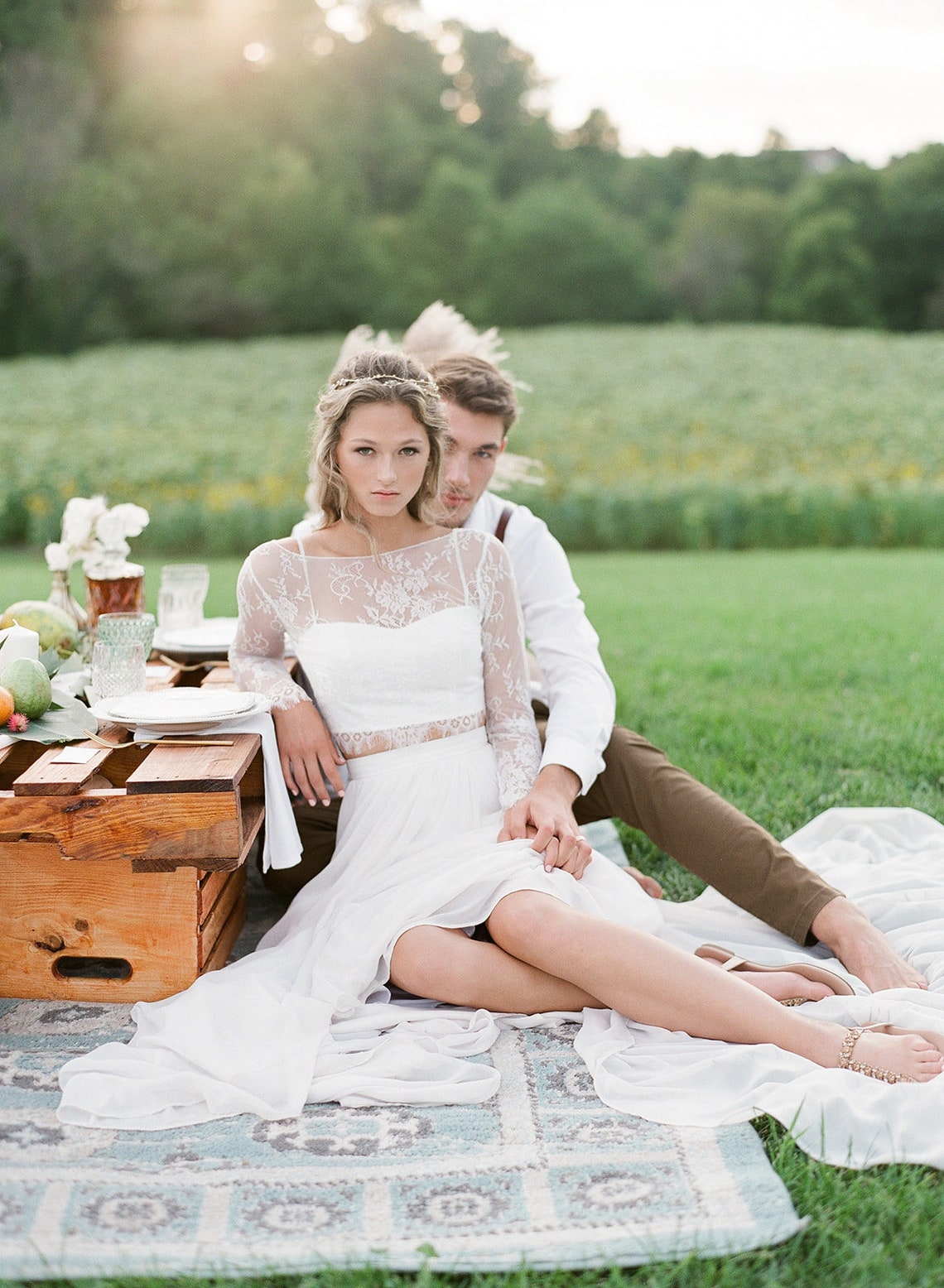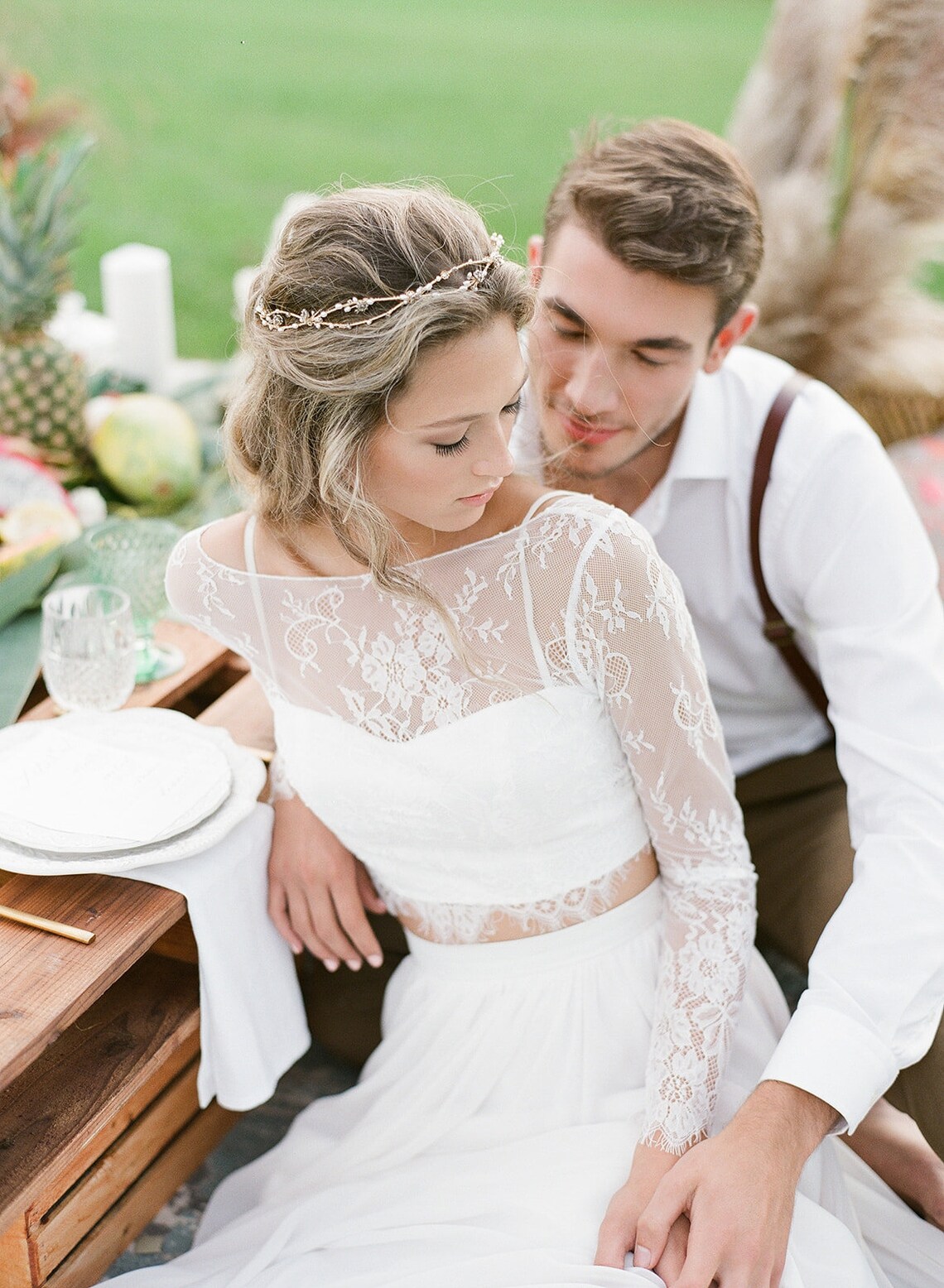 Bateau Neck Ivory Lace Wedding Dresses Boho Style Long Sleeves Bridal Dress A Line 2 Pieces Wedding Gowns