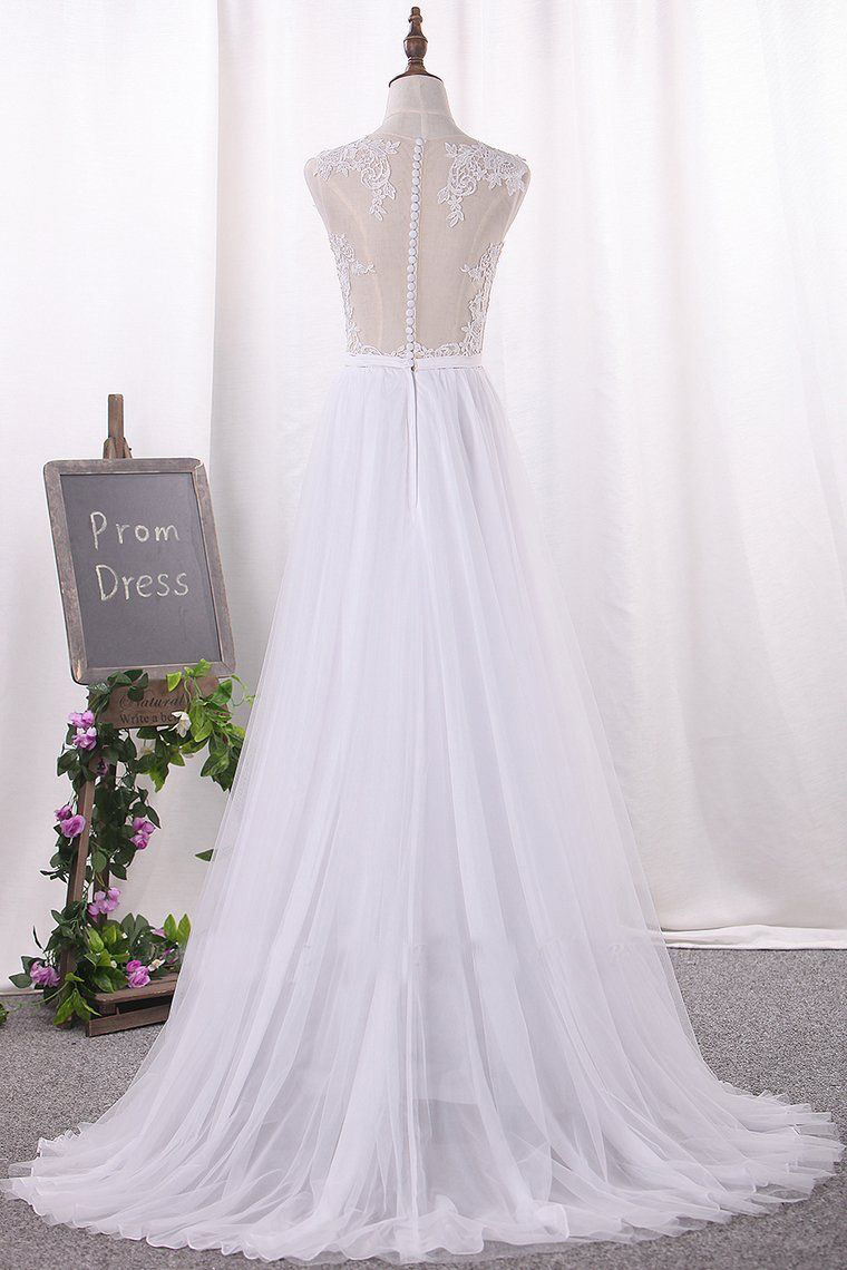 Sheet Neck Sexy Wedding Dresses A Line Bridal Gowns Lace Appliques Simple Wedding Gowns