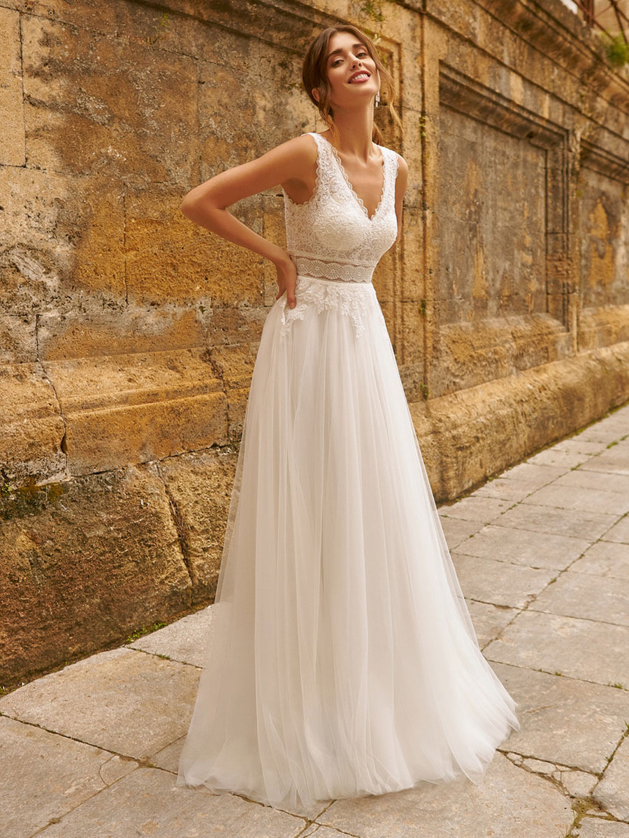 Boho Wedding Dresses with Lace Appliques, Beach Wedding Dresses