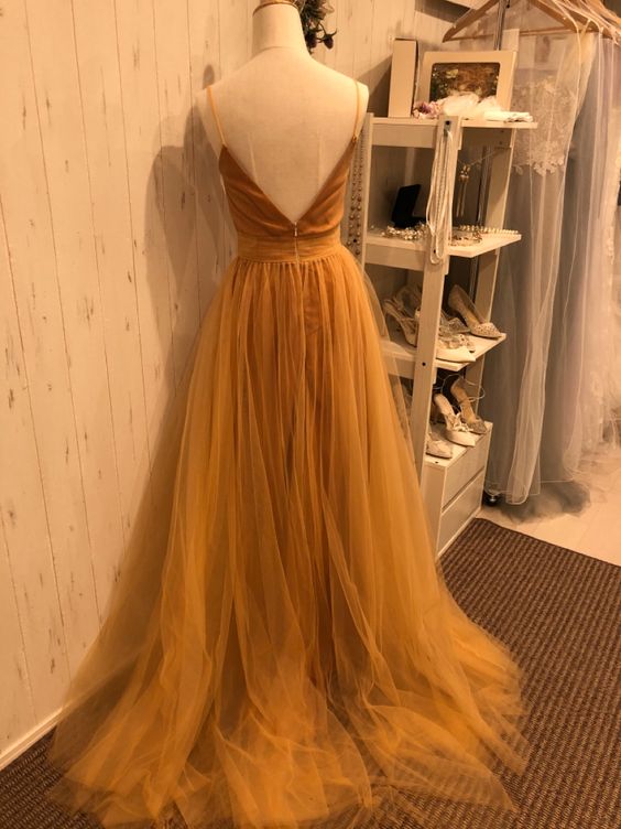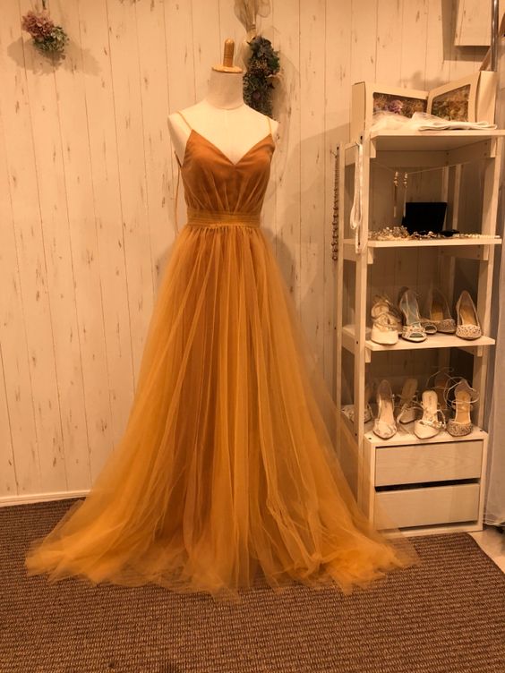 Spaghetti Straps Orange Prom Dresses A Line Tulle Evening Gowns with Open Back Simple Party Wear for Women