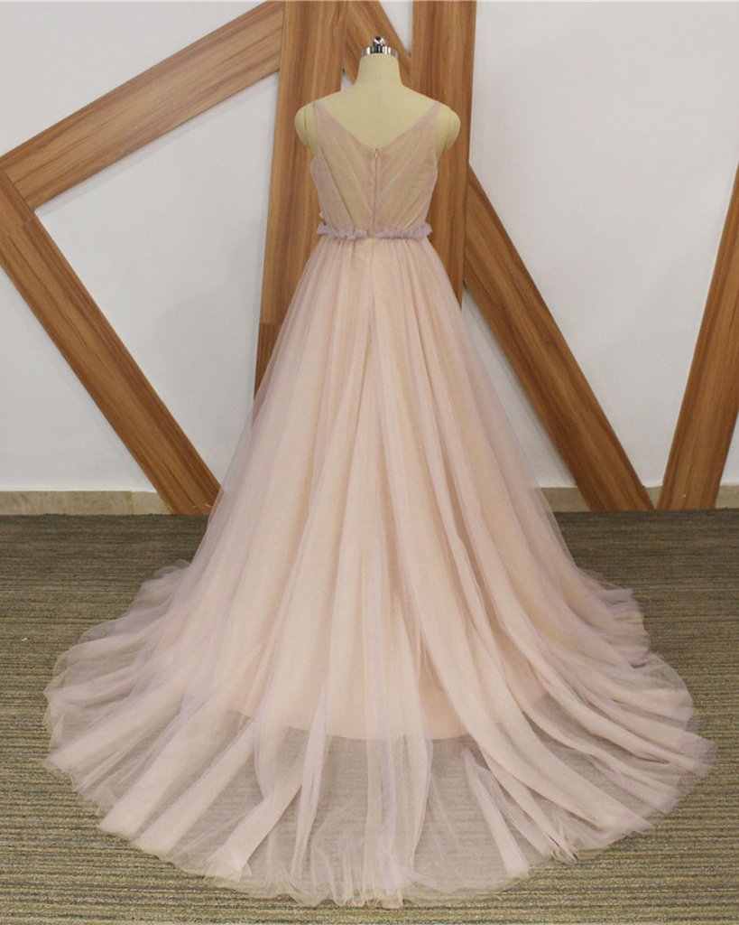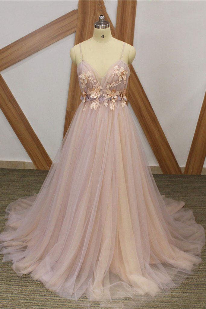 Spaghetti Straps Dusty Pink Prom Dresses 3D Appliques Floal Party Gowns A Line Affordable Evening Wear for Women