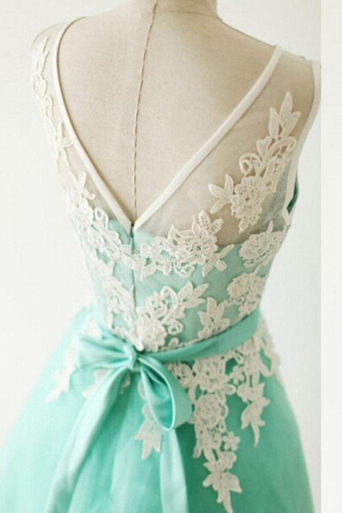 White and Mint Prom Dresses, Short Bridesmaid Dresses, Wedding Party Dresses