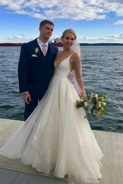 Deep V-Neck White Organza Wedding Dresses Floor Length Bridal Gowns A Line Vestidos De Novia