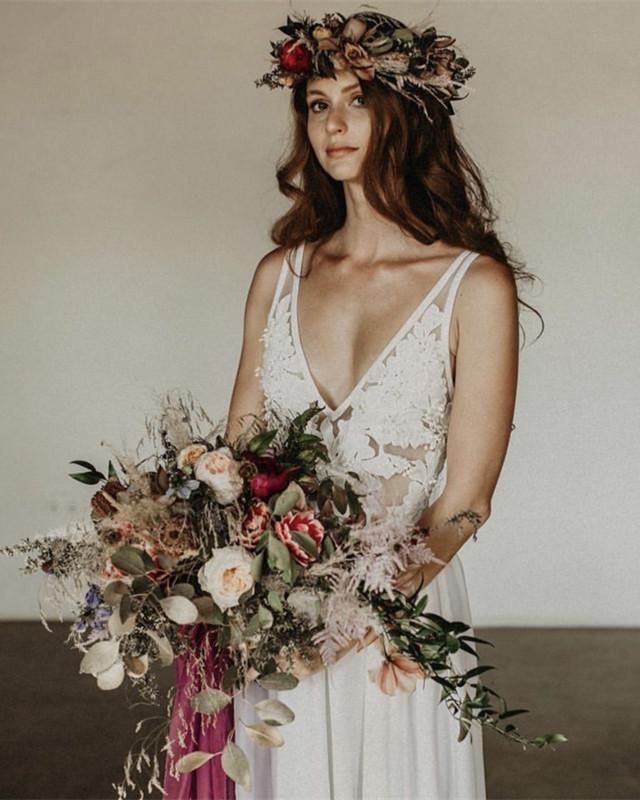 Elegant V-Neck Boho Wedding Dresses Lace Appliques Simple Bridal Gowns Backless Vestidos De Novia with Sweep Train