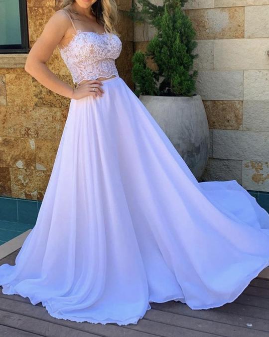 Spaghetti Straps 2 Pieces Wedding Dresses White Lace Bridal Gowns A Line Vestidos De Novia