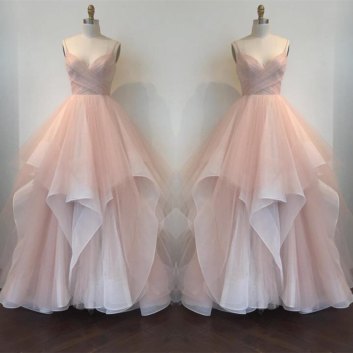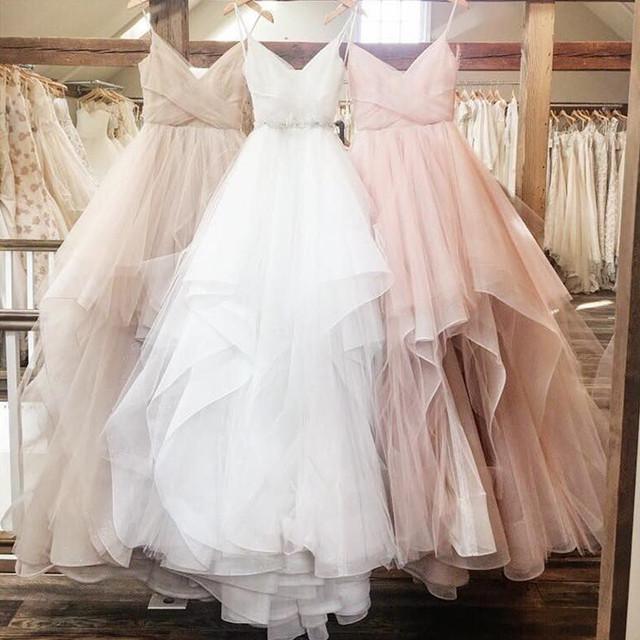 Blush Pink Wedding Gowns Spaghetti Straps Bridal Dresses Floor Length Vestido De Novia