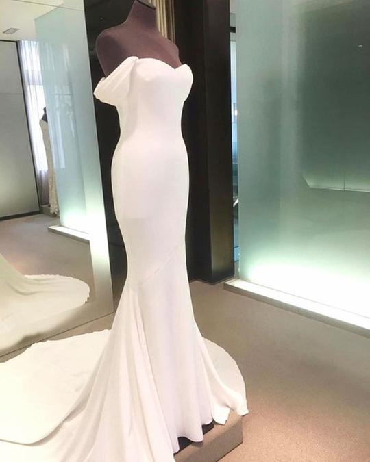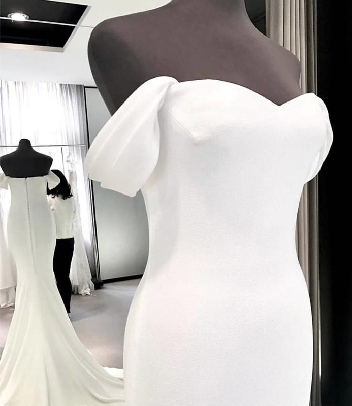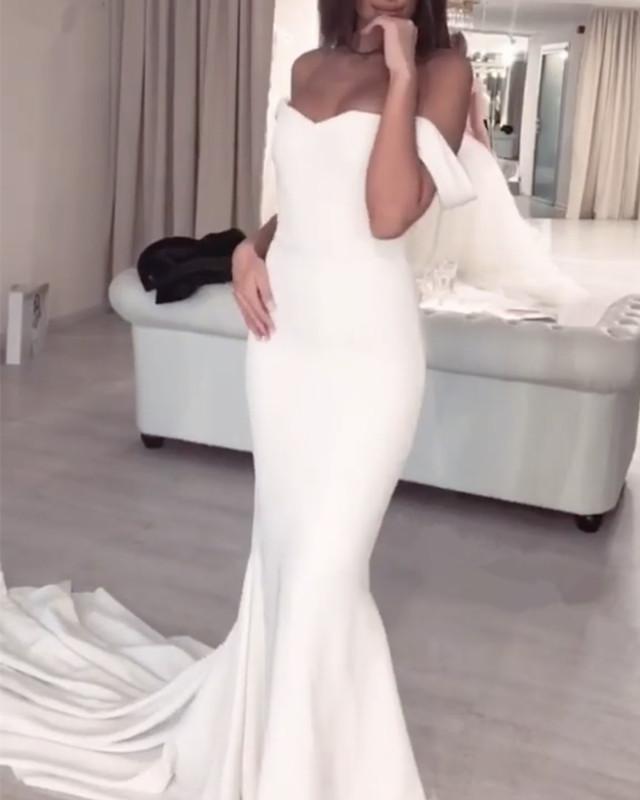 Off Shoulder Ivory Satin Wedding Dresses Boho Mermaid Bridal Gowns Zipper Up Vestido De Novia with Court Train
