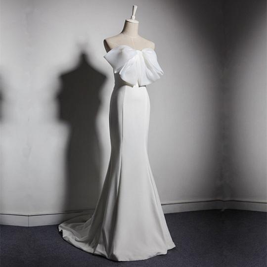 Strapless Mermaid Wedding Dresses Pleated Satin Bridal Gowns with Bow Robe De Marrie