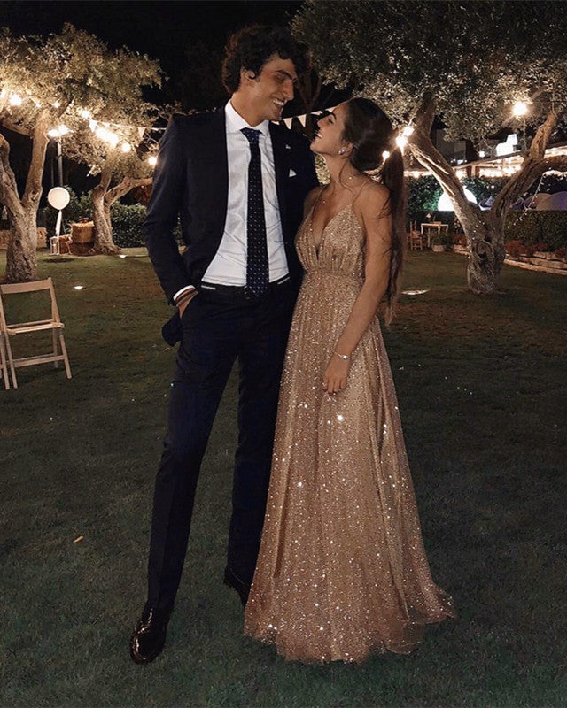 Spaghetti Straps Sexy Prom Dresses Sequined Light Purple Evening Gowns Backless Robe De Soiree