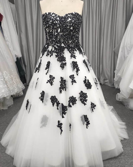 Strapless Black Lace Ball Gown Wedding Dresses Sleeveless Bridal Gowns Lace Up Vestido De Novia