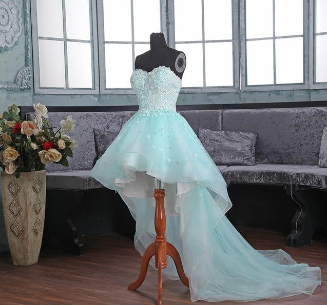 High Low Mint Green Prom Dresses 3D Floral Evening Gowns Pearls Beading Homecoming Dress with Lace Up Back