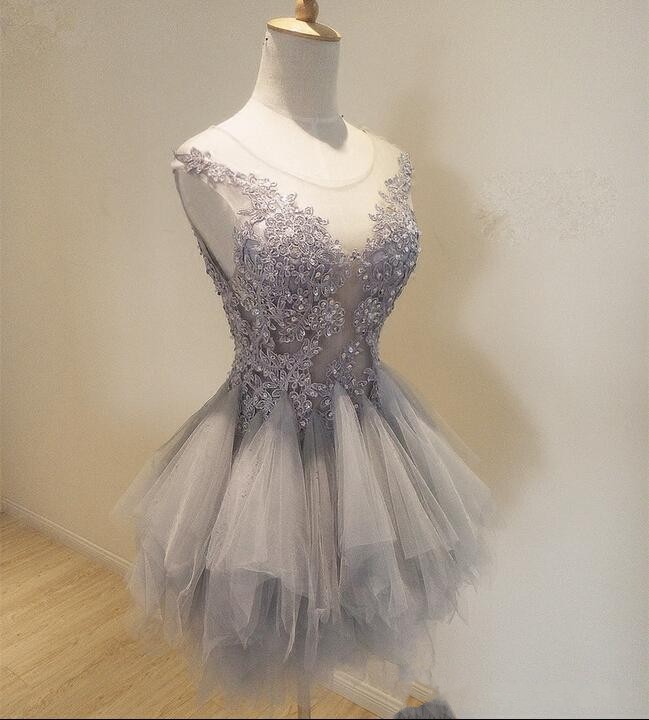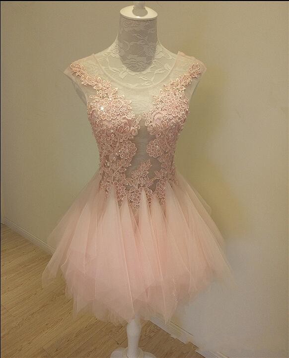 Sweet Round Neck Pink Homecoming Dresses Lace Appliques Sequined Short Evening Gowns Sheer Back Party Wear for Women