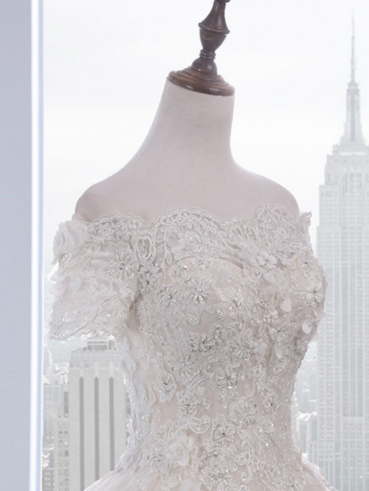 Bateau Neck Ball Gown Wedding Dresses Beaded Champagne Bridal Gowns Lace Appliques Robe De Mariage