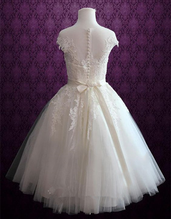 Sheer Round Neck Short Wedding Dresses Lace Appliques Simple Bridal Gowns with Button Robe De Mariage