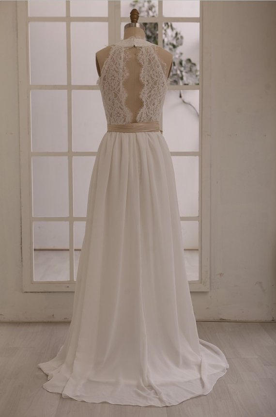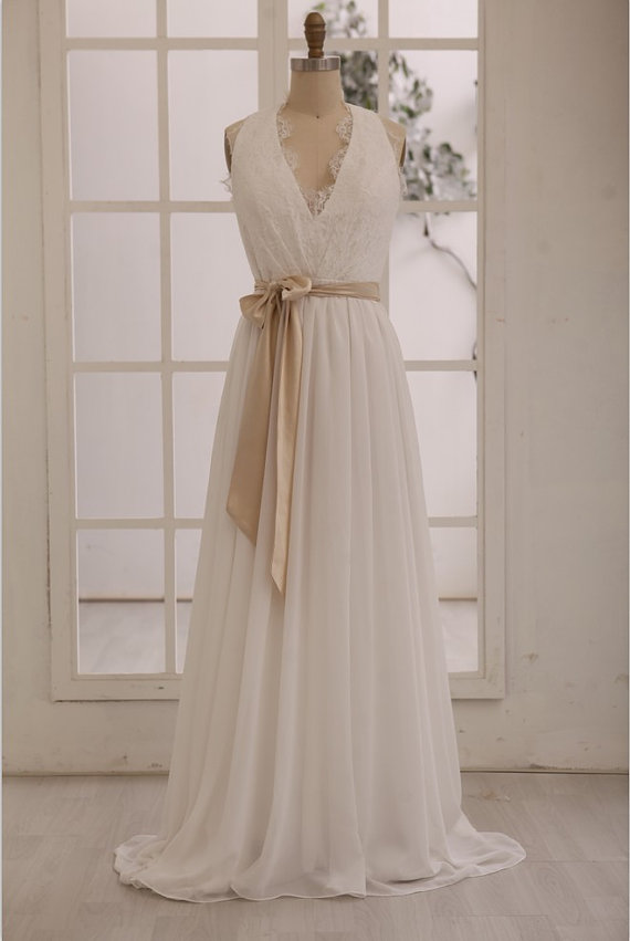 Elegant V-Neck Simple Boho Wedding Dresses Open Lace Back Bridal Gown A Line Chiffon Vestido De Novia