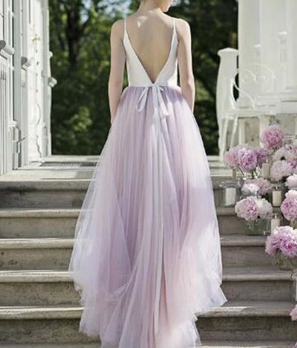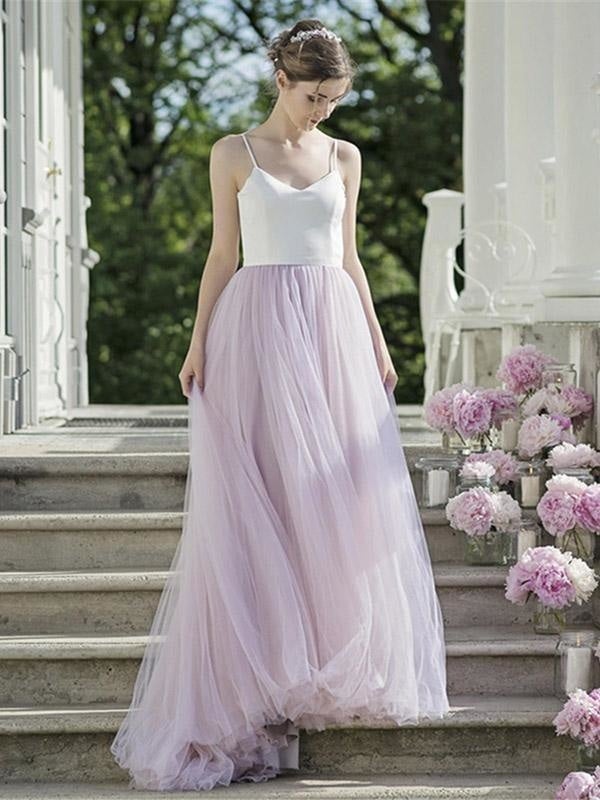 Casual Spaghetti Straps Dusty Pink Wedding Dresses A Line Tulle Bridal Dress Backless Wedding Gowns Boho