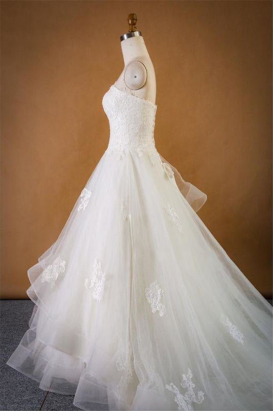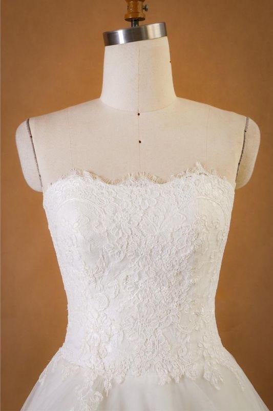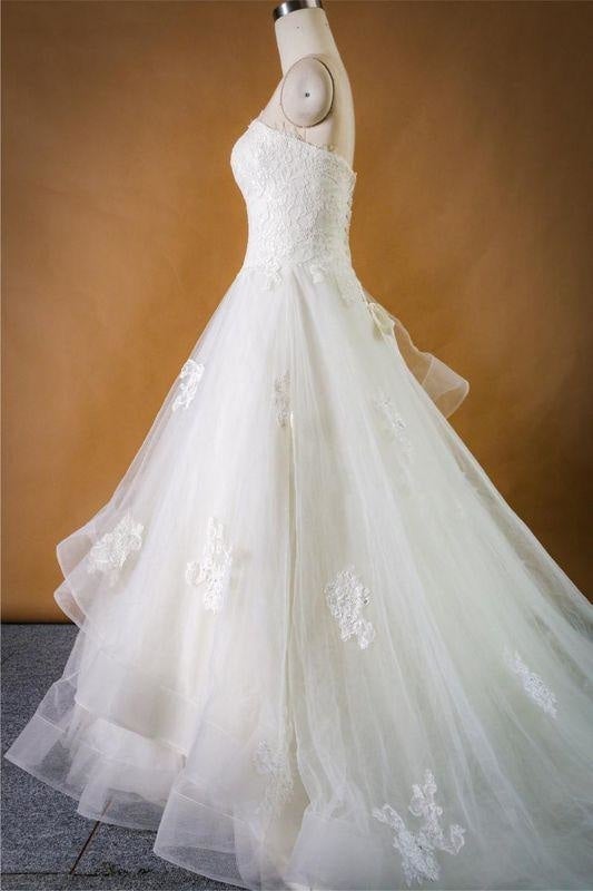 Strapless Simple Wedding Dresses Lace Appliques Ivory Bridal Dress Tiered Tulle Wedding Gowns Robe De Mariage