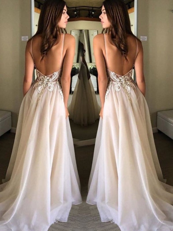 Deep V-Neck Sexy Lace Wedding Dresses Backless Sexy Wedding Gowns A Line Tulle Boho Bridal Dress Vestido De Novia