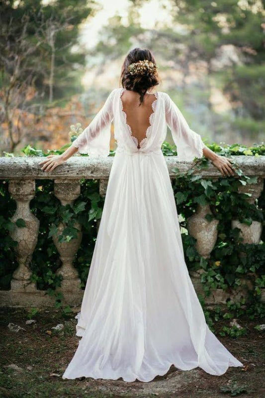 Real Photos Vintage Chiffon Wedding Dresses Lace Appliques Ivory Bridal Dress A Line Boho Wedding Gowns