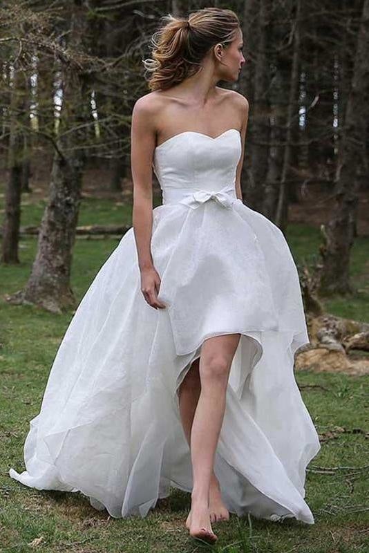 Sweetheart High Low Simple Wedding Dresses Ruched Tulle Modest Wedding Gowns with Lace Up Boho Bridal Dress Vestido De Novia