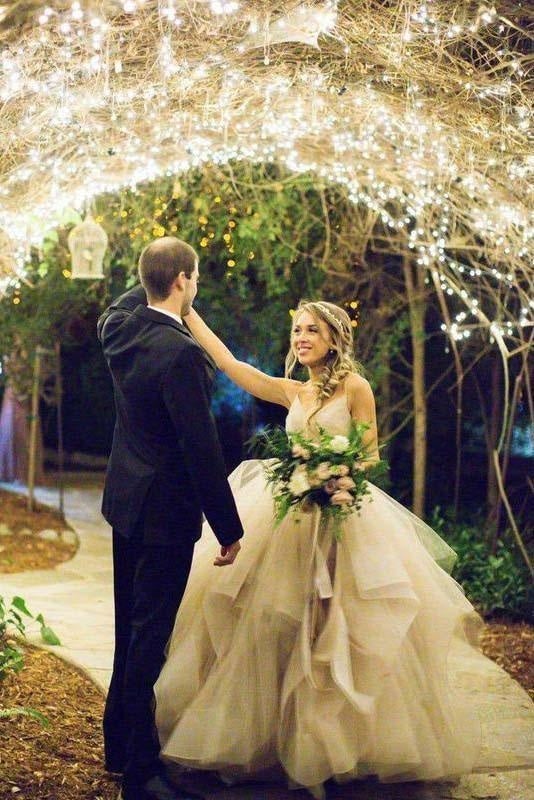 Puffy Spaghetti Straps Dusty Pink Wedding Dresses Ruffle Tulle Boho Wedding Gowns with Sweep Train Bridal Robe De Mariee