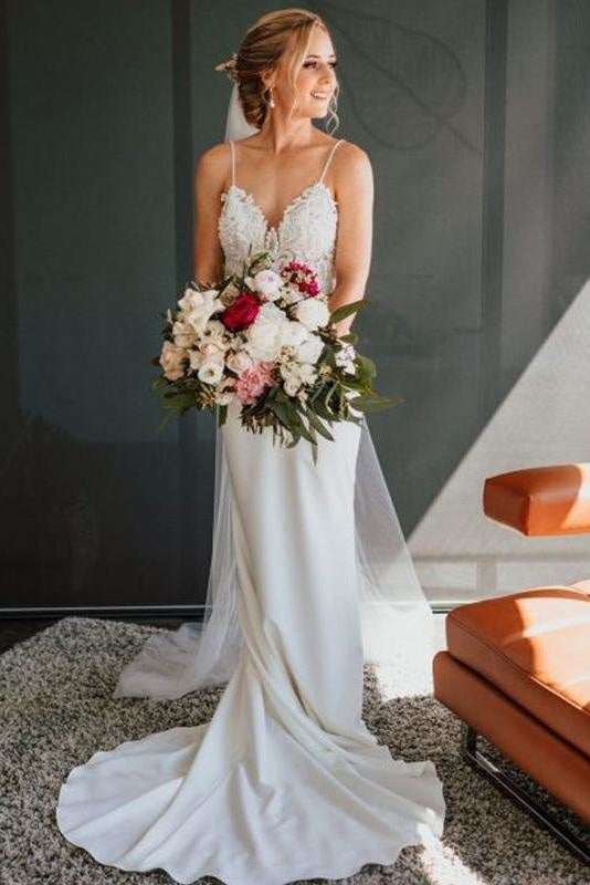 Spaghetti Straps Mermaid Wedding Dresses Backless Sexy Wedding Gowns Lace Appliques Boho Bridal Dress with Sweep Train