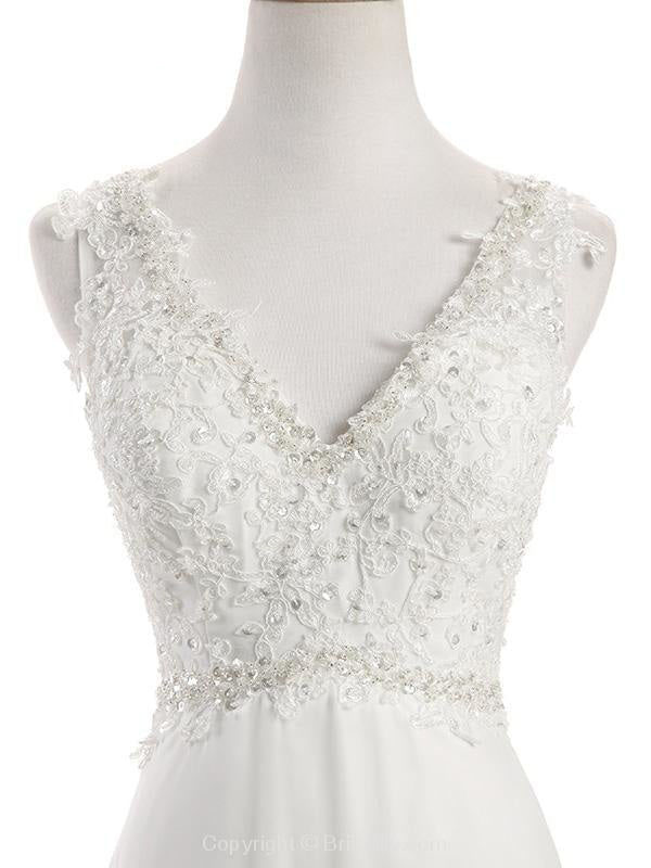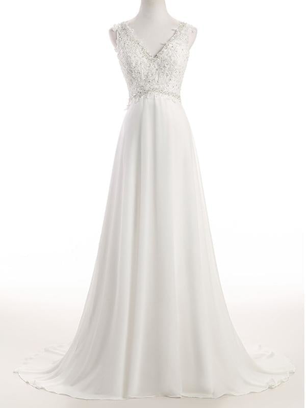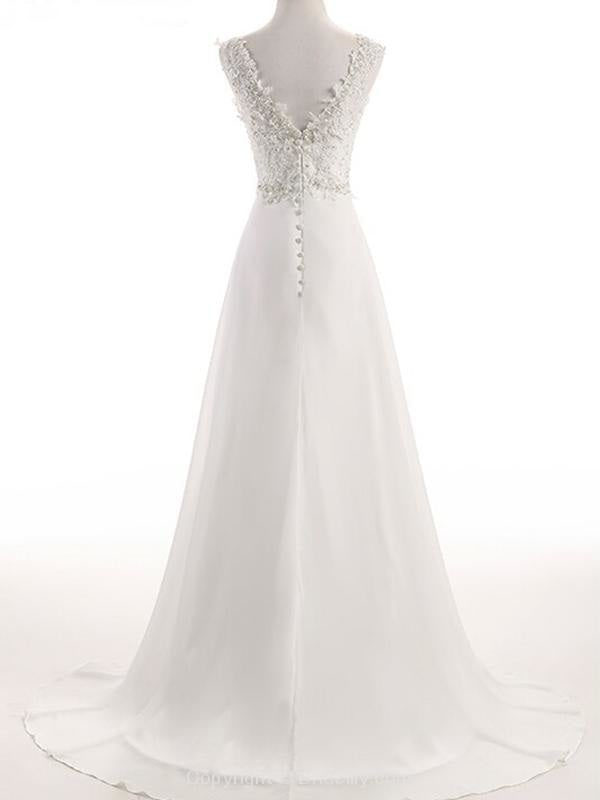 Elegant V-Neck A Line Chiffon Wedding Dresses Lace Appliques Boho Bridal Dress Pearls Beading Simple Wedding Gowns Vestido De Novia
