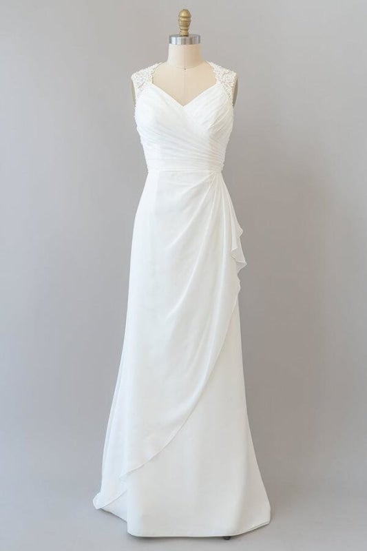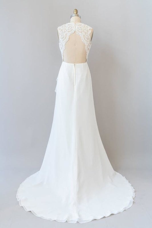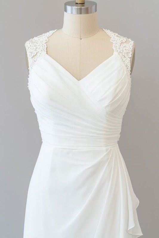 Elegant V-Neck Pleated Chiffon Bridal Dresses Lace Appliques Boho Wedding Gowns with Open Back Simple Wedding Dress