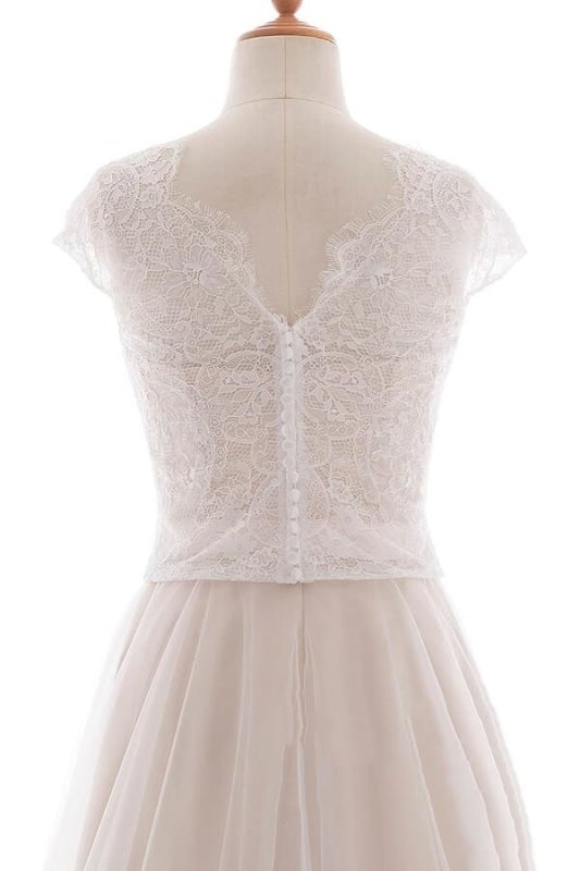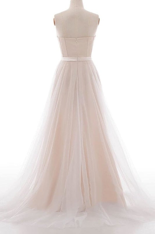 Chic V-Neck Champagne Wedding Dresses A Line Lace Wedding Gowns Sleeveless Sweet Bridal Dress Vestido De Novia