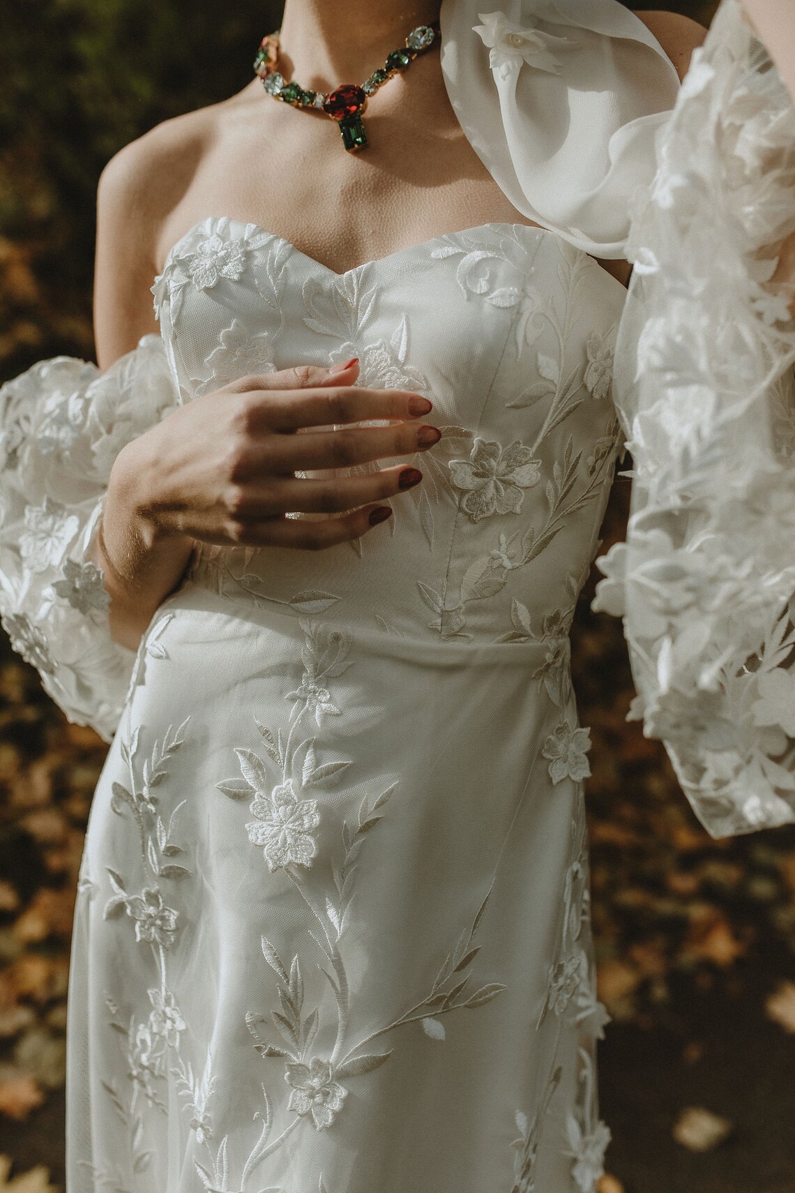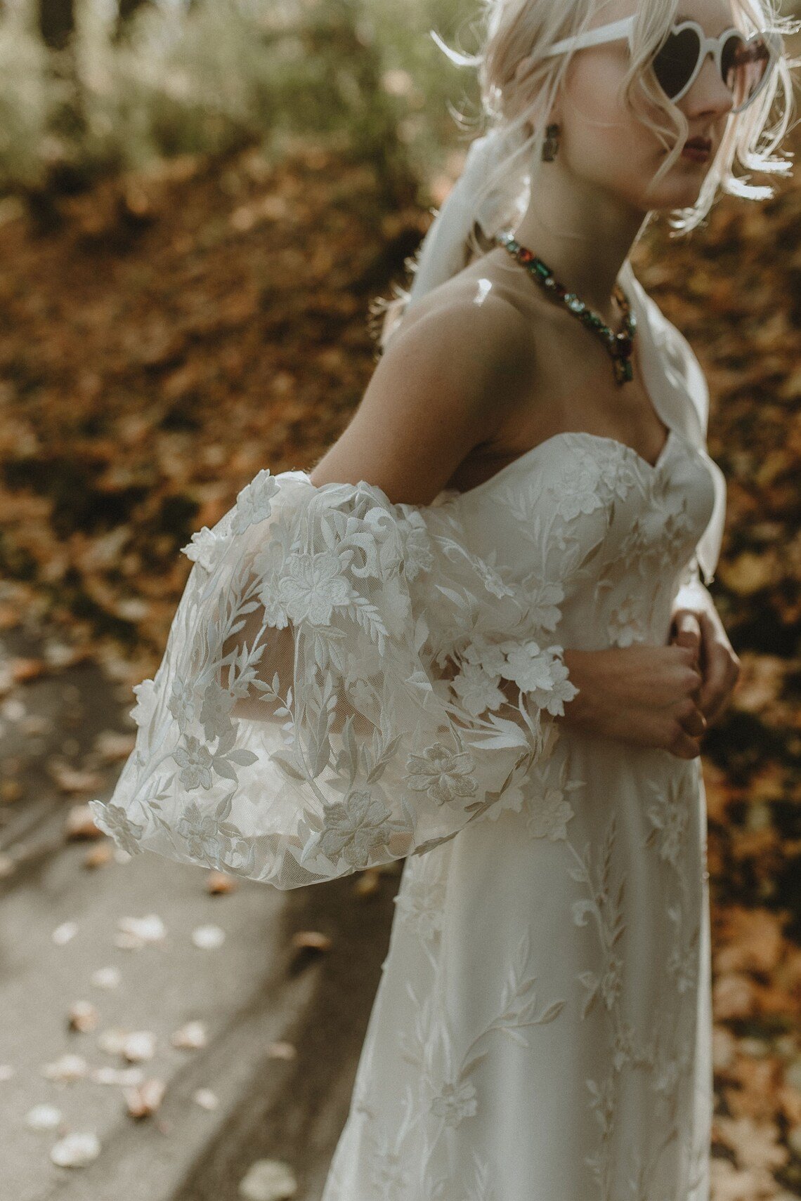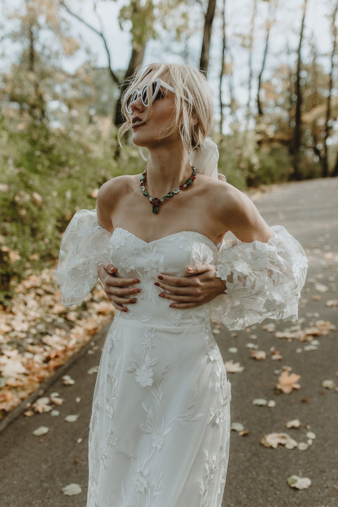 3D Floral Lace wedding dresses Strapless Ivory Wedding Gowns Puff Sleeves Sexy Bridal Dress Robe De Mariee