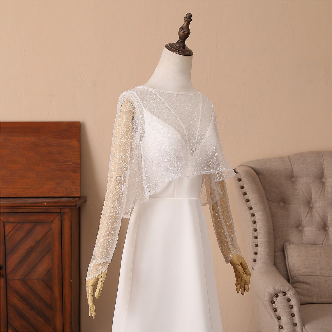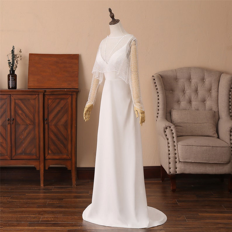 Illusion Neck Sexy Wedding Dresses A Line Satin Boho Wedding Gowns with Open Back Sequined Long Sleeves Bridal Dress Robe De Mariee