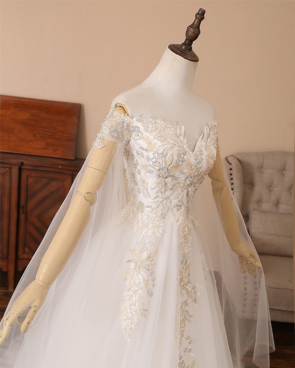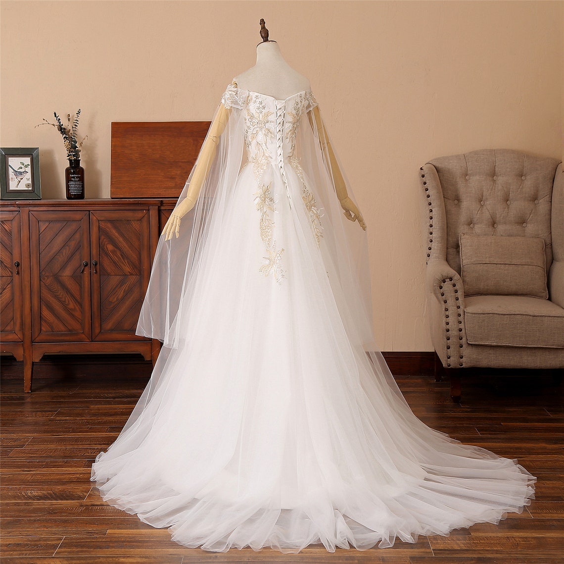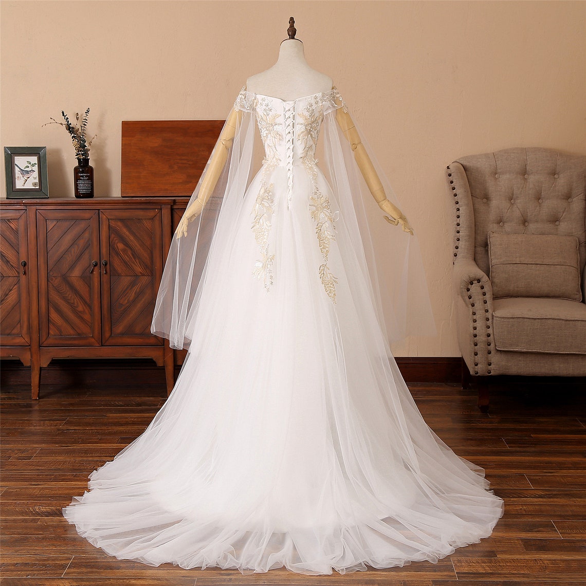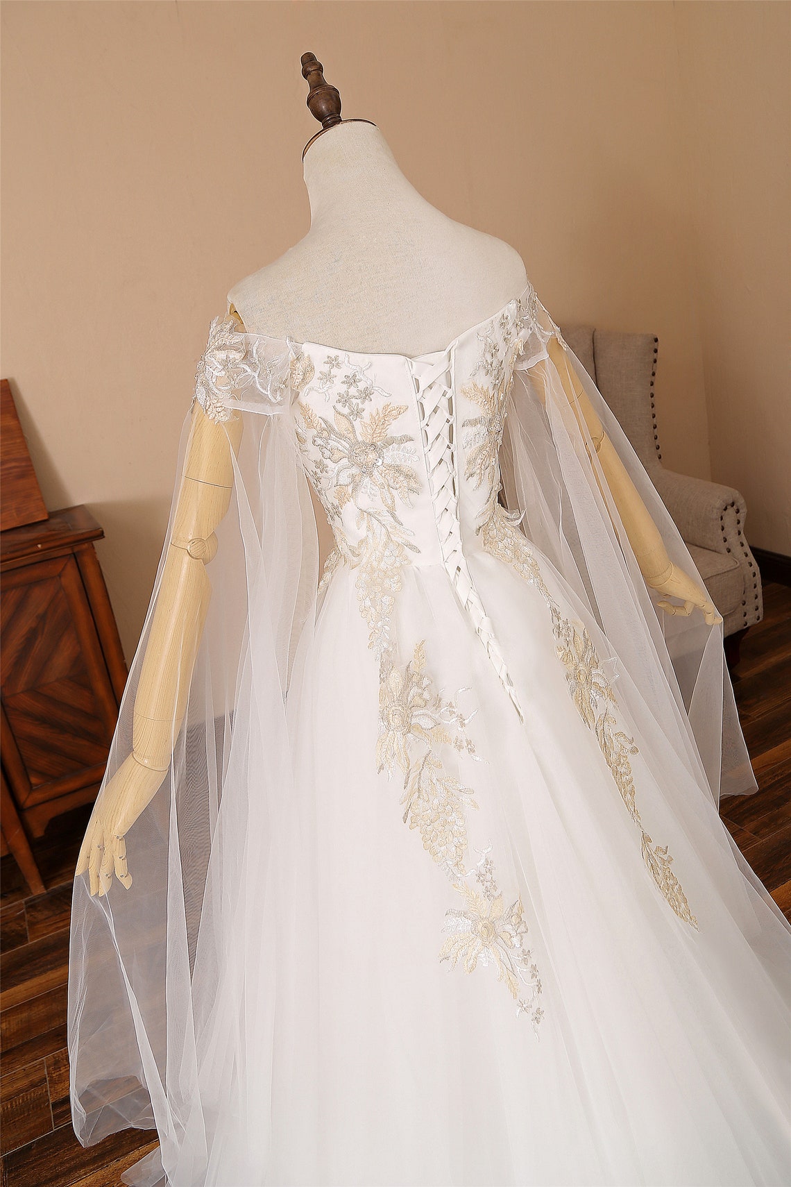 Puffy Long Sleeves Princess Wedding Dresses Boho Lace Appliques White Weddng Gowns Sequined Elegant Bridal Dress Vestido De Novia