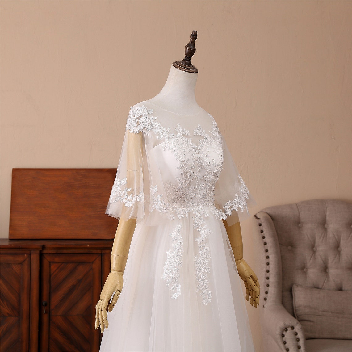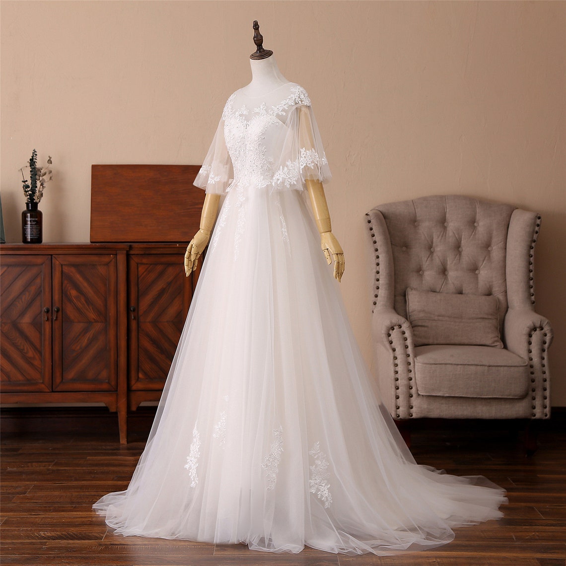Illusion Jewel Neck Vintage Wedding Dresses Lace Appliques White Wedding Gowns Sequined Elegant Bridal Dress