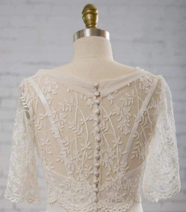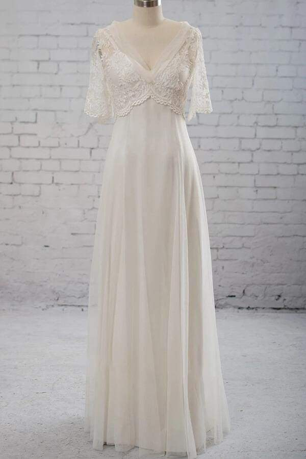 Vintage Boho Lace Wedding Dresses A Line Ivory Bridal Dress Short Sleeves Simple Wedding Gowns