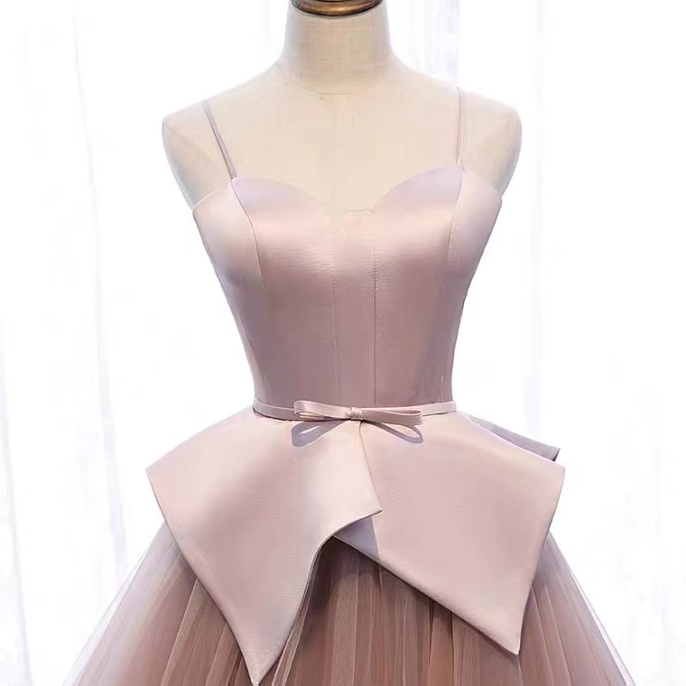 Spaghetti Straps Dusty Pink Prom Dresses Satin and Tulle Evening Gowns with Lace Up Formal Party Gowns