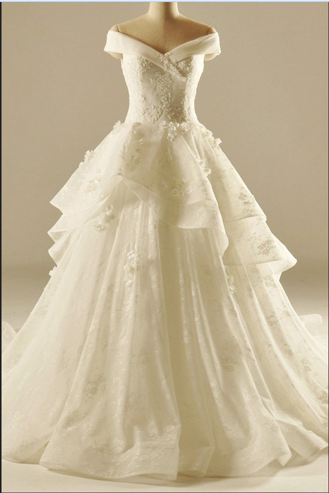 Off the Shoulder Vintage Wedding Dresses Lace Appliques Ivory Bridal Dress Tiered Boho Wedding Gowns
