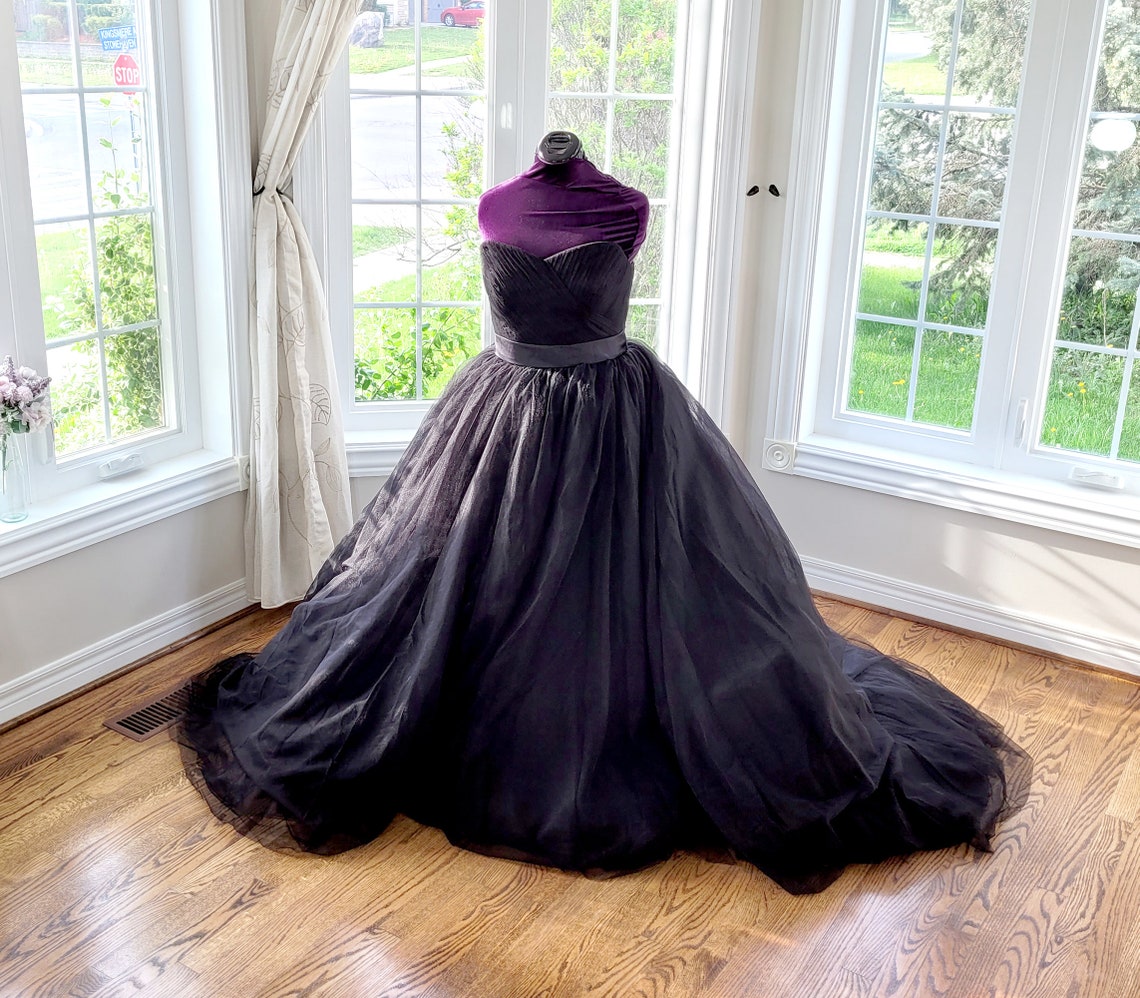 Sweetheart Black Wedding Dresses Ruched Tulle Gothic Bridal Dress with Court Train Simple Wedding Gowns
