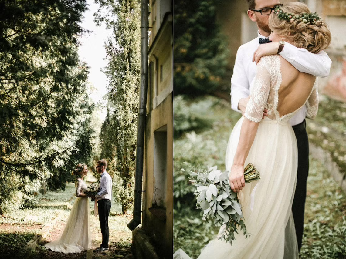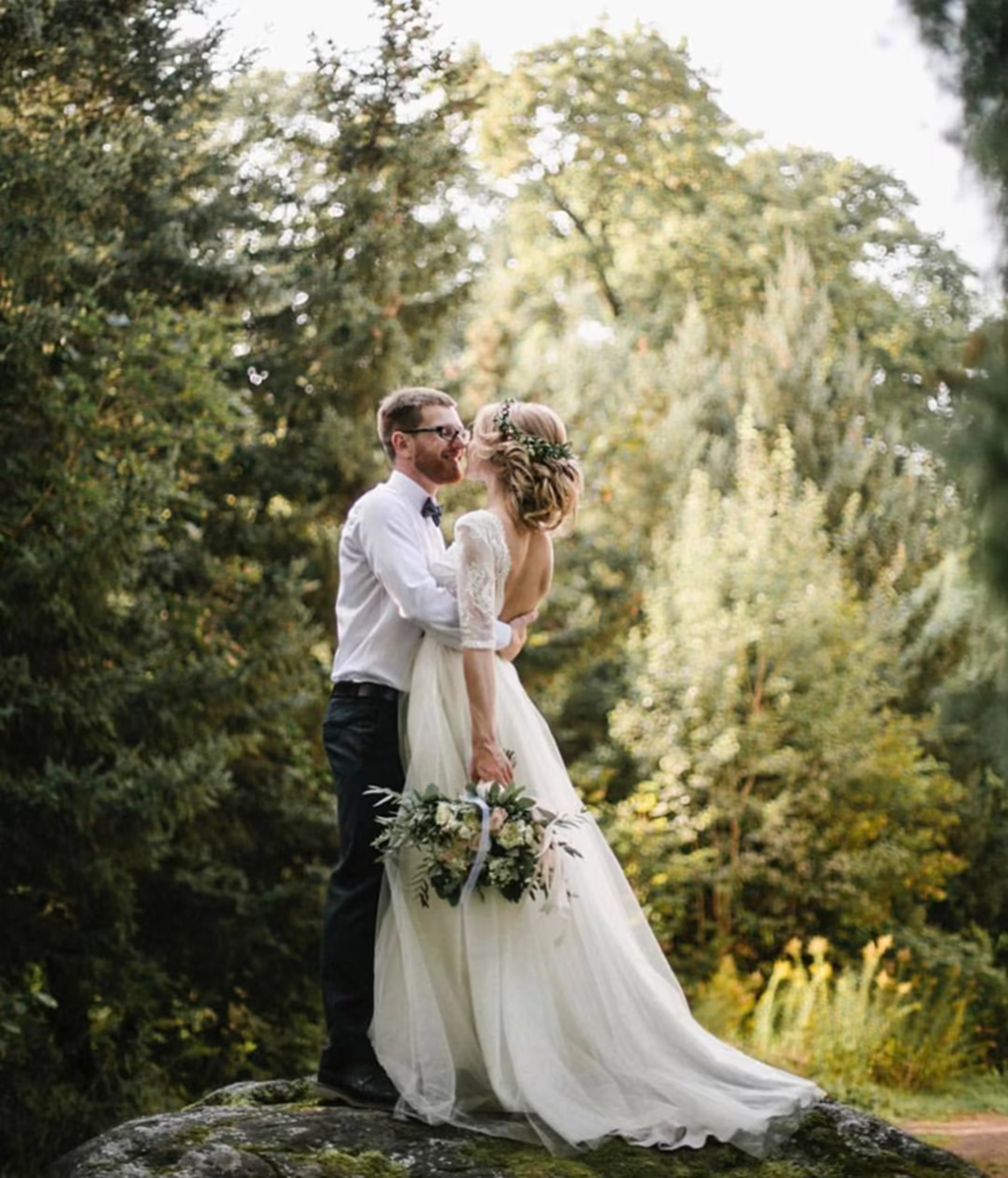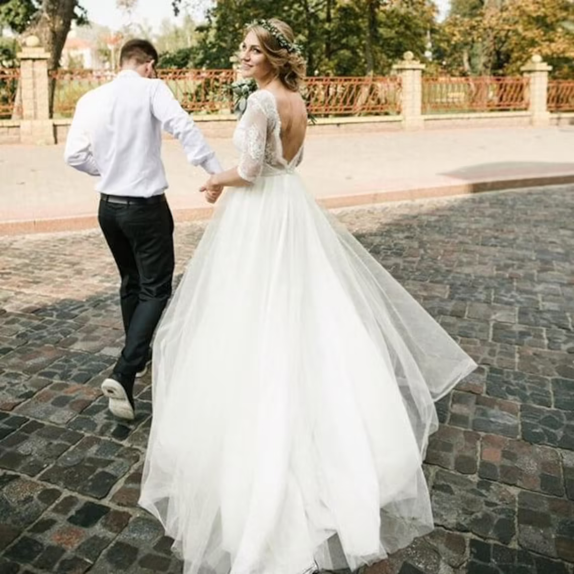 Boho Style Backless Wedding Dresses A Line Lace Wedding Gowns with 1/2 Sleeves Country Bridal Dress