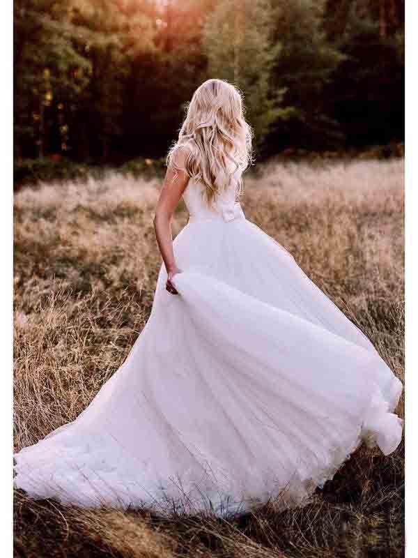 Vintage Round Neck Tulle Wedding Dresses A Line Country Wedding Gowns with Bow Simple Bridal Dress
