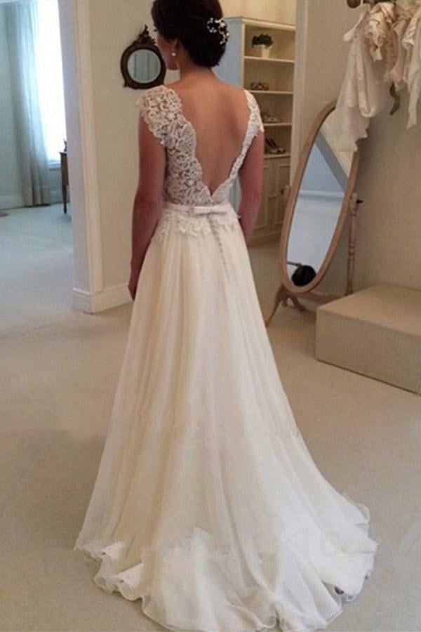 Vintage Round Neck Lace Wedding Dresses Backless Beach Wedding Gowns A Line Simple Bridal Dress