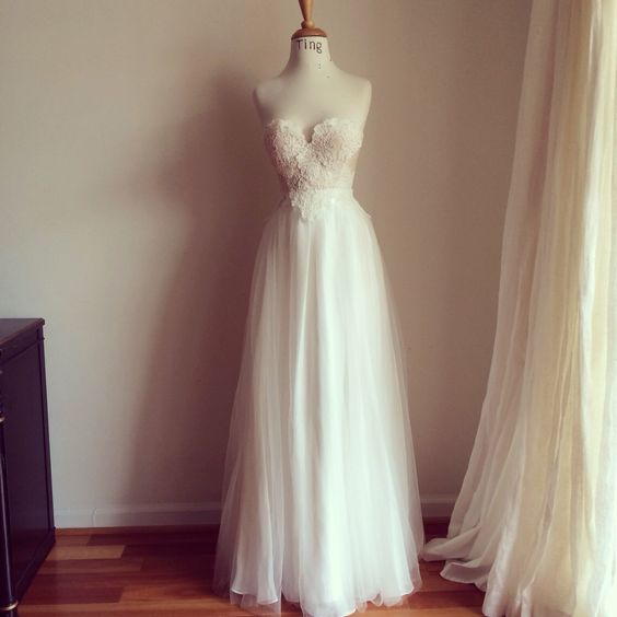 Sweetheart Simple Wedding Dresses A Line Ivory Wedding Gowns Lace Appliques Boho Bridal Dress