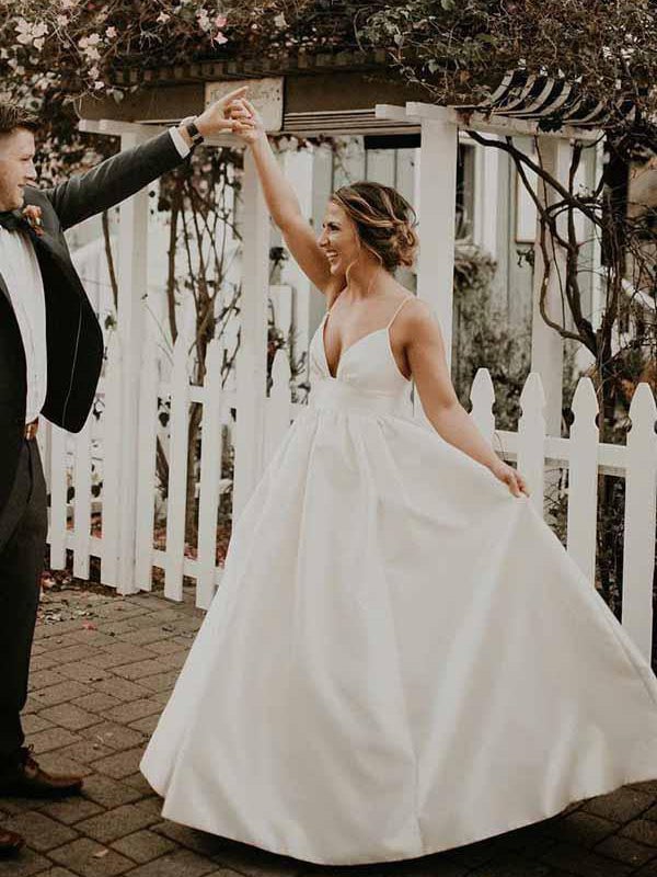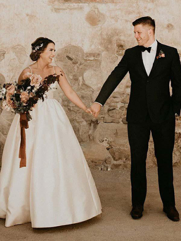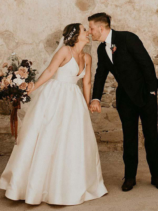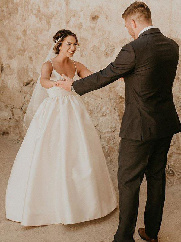 Spaghetti Straps Ball Gown Wedding Dresses Sleeveless Simple Wedding Gowns Pleated Satin Bridal Dress