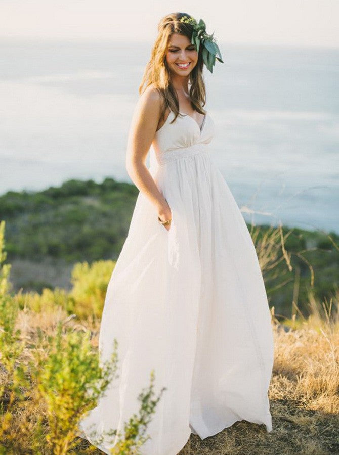 Spaghetti Straps Maternity Wedding Dresses A Line Country Wedding Gowns High Empire Simple Bridal Dress