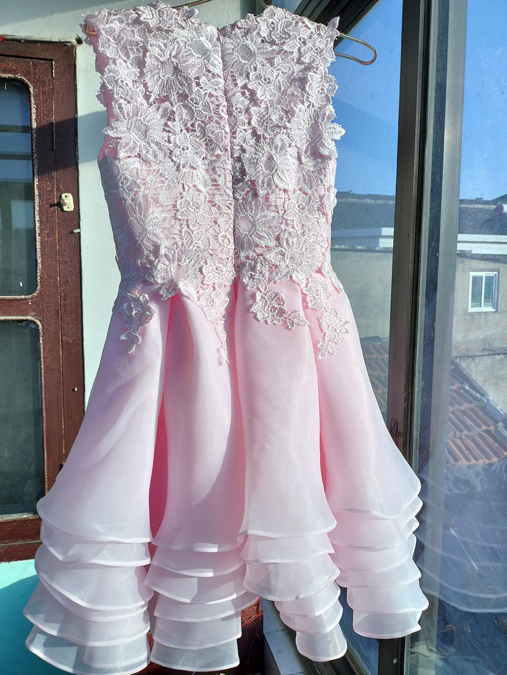 Real Photos Pink Short Prom Dresses with Ruffled Skirt, Pink Homecoming Dresses, Engagement Party Dresses