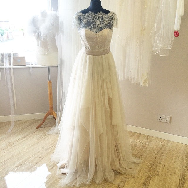 Bateau Neck Ivory Wedding Dresses A Line Chiffon Wedding Gowns Lace Appliques Boho Bridal Dress