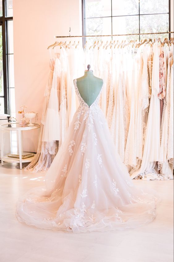 Illusion V-Neck Blush Pink Wedding Dresses Lace Appliques Tulle Bridal Dress Backless Simple Wedding Gowns