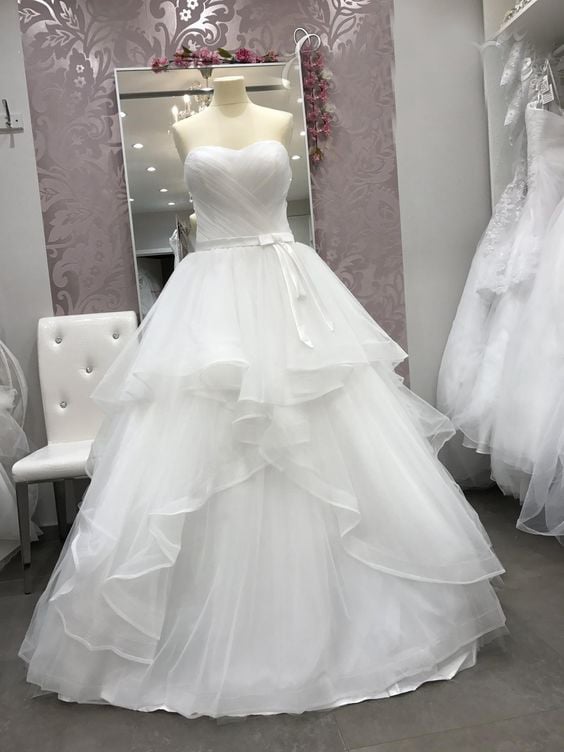 Sweetheart White Wedding Dresses Ruffle Tulle Wedding Gowns with Lace Up Affordable Bridald Dress
