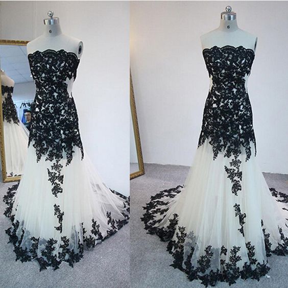 Strapless Blck Lace Wedding Dresses Sleeveless Mermaid Wedding Gowns with Lace Up Back Gothic Bridal Dress