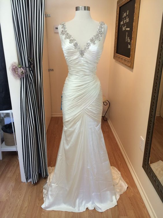 Decent V-Neck Mermaid Wedding Dresses Pleated Satin Wedding Gowns Beaded White Bridal Dress